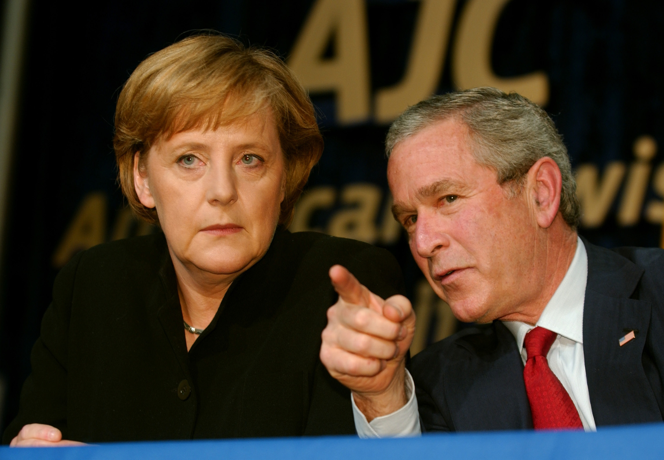 Angela Merkel, chancelière d’Allemagne et George W. Bush,