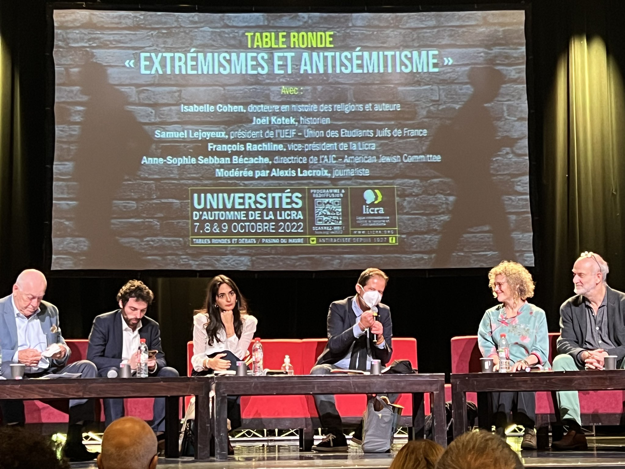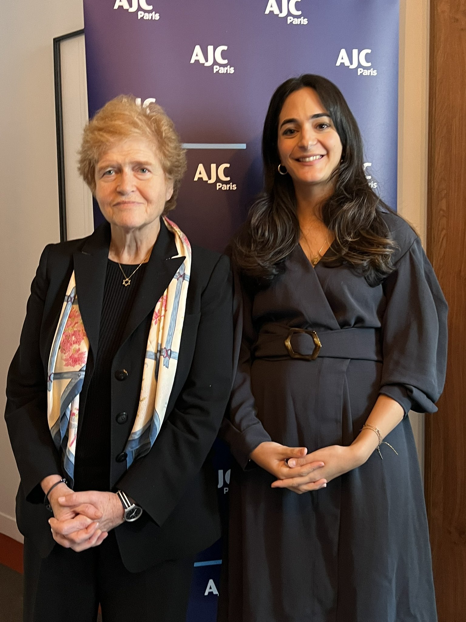 Ted Deutch avec les responsables d'AJC Paris Access, Shani Benoualid, Marie-Sarah Seerberger et Antoine Haguenauer, pour le lancement officiel d'Access Paris, le 29 novembre 2022 29 novembre 2022 Entretien exceptionnel avec Garry Kasparov 16 novembre 2022 Deborah E. Lipstadt reçue par Anne-Sophie Sebban-Bécache, dans les bureaux d'AJC Paris 24 octobre 2022 Deborah E. Lipstadt dans les bureaux d'AJC Paris 24 octobre 2022 Très honorés d'avoir reçu à Paris Deborah E. Lipstadt, envoyée spéciale du Département d'État américain pour la lutte contre l'antisémitisme. L'occasion de parler de la résurgence de l'antisémitisme à travers le monde et des réponses nécessaires. 24 octobre 2022 Anne-Sophie Sebban-Bécache participe à la Table ronde « Extrémismes et antisémitisme » organisée par la LICRA dans le cadre des Universités d’automne des 8 et 9 octobre 2022 au Havre, avec Mario Stasi, Président de la LICRA, Sophie Elizeon et Elise Fajgeles de la DILCRAH et Astrid Panossyan, Députée de Paris Renaissance. 12 octobre 2022 Anne-Sophie Sebban-Bécache participe à la Table ronde « Extrémismes et antisémitisme » organisée par la LICRA dans le cadre des Universités d’automne des 8 et 9 octobre 2022 dans la ville du Havre. 12 octobre 2022 Le Forum annuel mondial d'AJC qui s'est tenu du 11 au 14 juin à New York, s'est achevé. Il a été l'occasion de moment très forts et émouvants à l'image de cette allocution solennelle et empreinte de gravité de Volodymyr Zelensky 14 juin 2022 "Les gouvernements peuvent-ils gagner la lutte contre l'antisémitisme ?" Une discussion modérée par Simone Rodan-Benzaquen, avec l'ambassadrice Deborah Lipstadt et Katharina von Schnurbein au Global Forum 2022 - Programme annuel Max Fisher 13 juin 2022 Simone Rodan-Benzaquen avec Denise Campbell Bauer, Ambassadrice des USA en France, "Nous avons échangé sur nos efforts communs pour lutter contre l'antisémitisme et sur notre engagement à combattre les discriminations sous toutes leurs formes. La démocratie, c'est la liberté religieuse, la diversité et l'inclusion de tous" 1 juin 2022 Anne-Sophie Sebban-Bécache avec S.E. l'Ambassadeur d'Israël au Sénégal, Monsieur Ben Burgel et S.E. l'Ambassadeur du Sénégal en France, Monsieur El Hadji Magatte Seye lors de la conférence sur la coopération entre Israël et l’Afrique. 31 mai 2022 Hommage pour le 10e anniversaire des attentats de Toulouse, qui a lieu le lundi 14 mars à 19h00 à la mairie du 16e arrondissement. Anne-Sophie Sebban-Bécache participe à la table ronde aux côtés de Samuel Sandler qui a perdu son fils et ses petits-enfants. 14 mars 2022 Anne-Sophie Sebban-Bécache remet à Sylvain Maillard, député et président du groupe d’études sur l’antisémitisme à l’Assemblée Nationale, l’étude sur la radiographie de l’antisémitisme en France. Édition 2022 26 janvier 2022 Anne-Sophie Sebban-Bécache a présenté l'étude sur la Radiographie de l’antisémitisme en France 2022 à Sophie Elizeon, déléguée interministérielle et Elise Fajgeles, secrétaire générale de la DILCRAH. Ce fut l’occasion d’évoquer des pistes de réflexion et d’action 26 janvier 2022 Anne-Sophie Sebban-Bécache, directrice d’AJC Paris, remet à Jean-Michel MIS, député de la Loire, le prix du AJC Project Interchange Alumni of the Year qui récompense les personnalités engagées dans nos combats à travers nos voyages en Israël et nos actions. Décembre 2021 14 décembre 2021 1 … 6 7 8 9 10