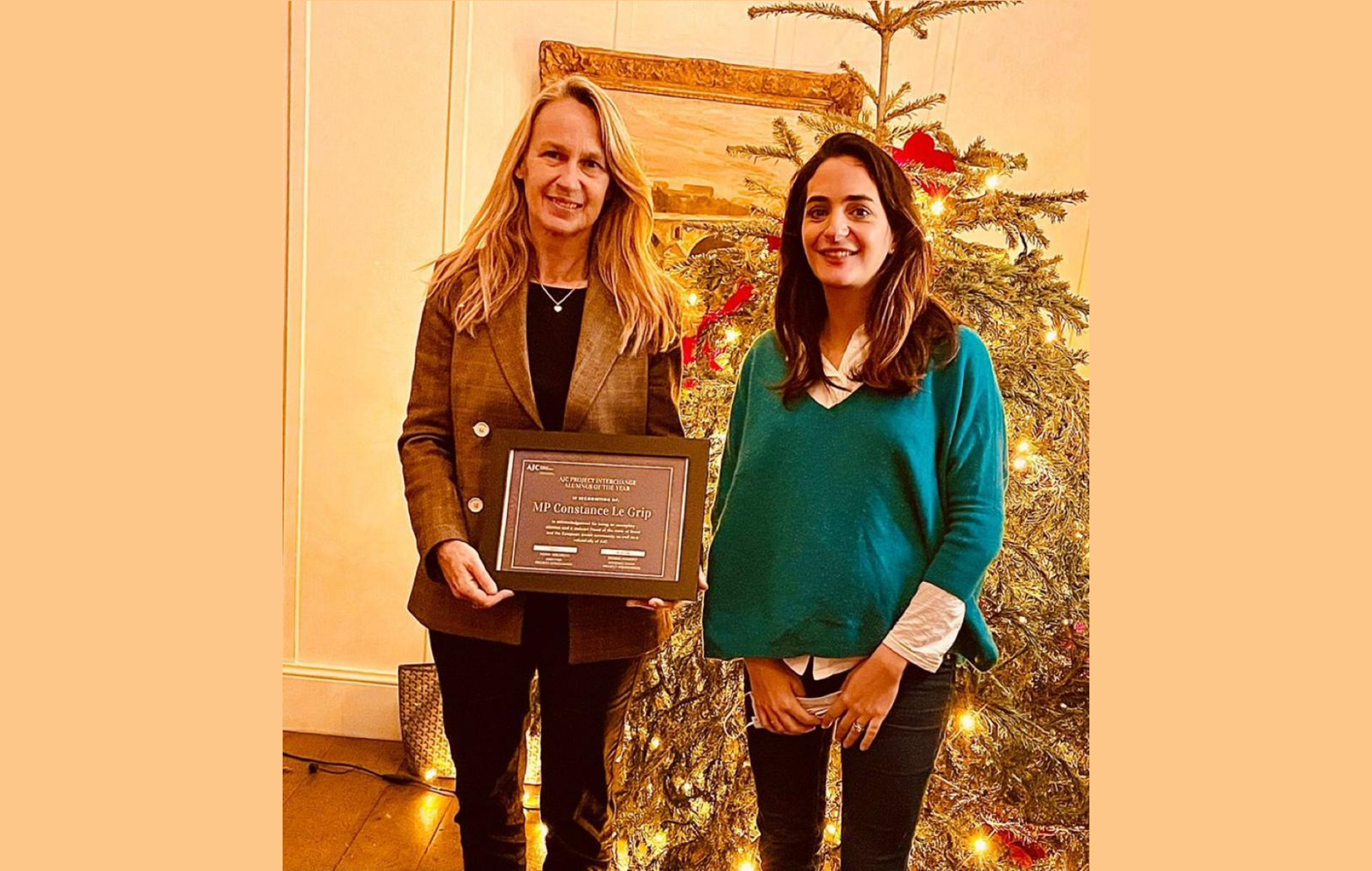 Anne-Sophie Sebban-Bécache, directrice d’AJC Paris, remet à Constance Le Grip, députée des Hauts-de-Seine, le prix du AJC Project Interchange Alumni…